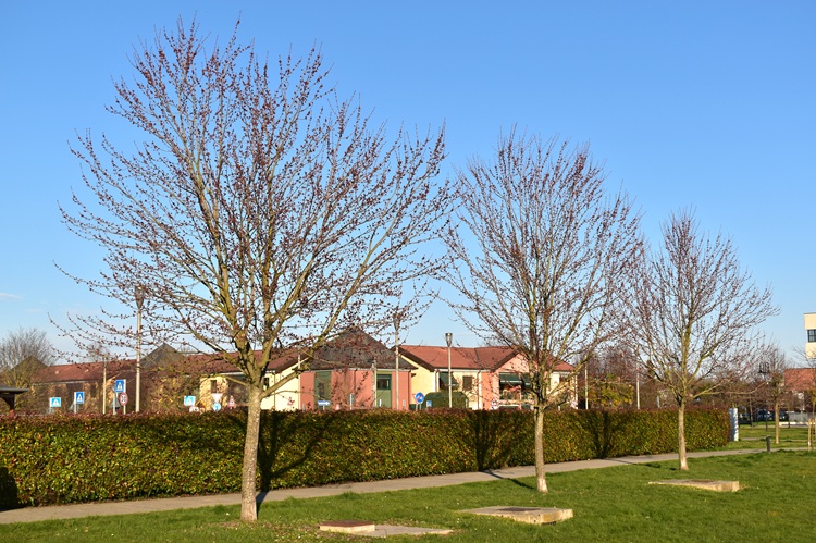 Albero di medie dimensioni, chioma fitta e ellissoidale (come un pallone da rugby), rami assurgenti dalla crescita irregolare. Raro, ma non rarissimo, in città.
