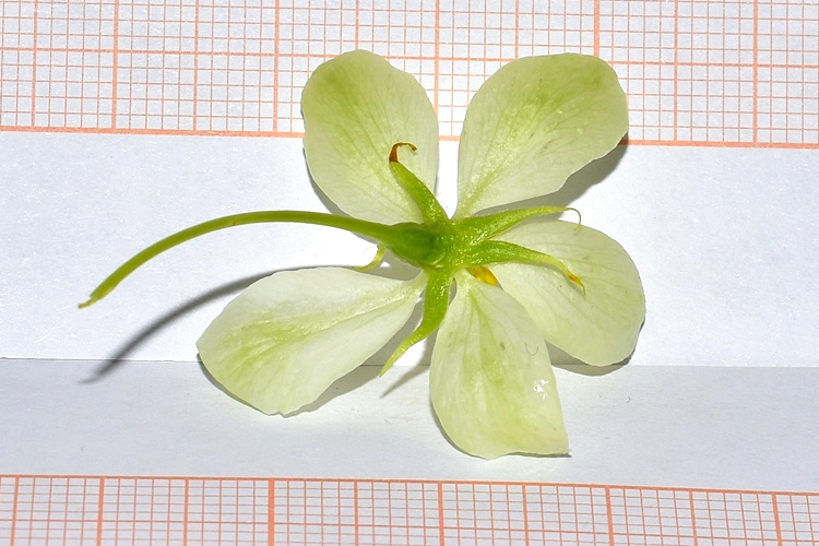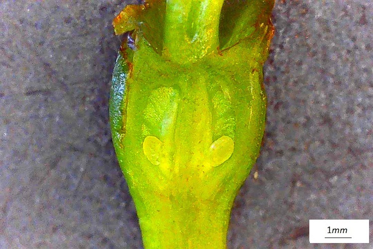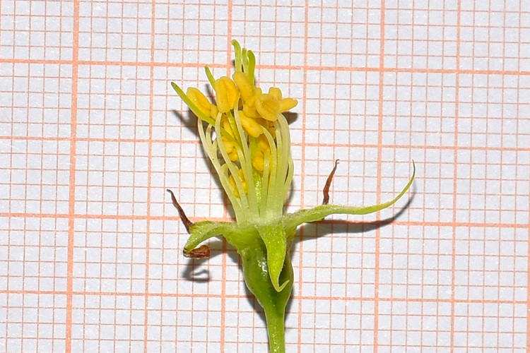 Orto Botanico di Padova. Rami non troppo robusti, i più bassi si allargano, gli altri salgono lenti, il tutto dà alla chioma aspetto semisferico; dopotutto quello che uno si aspetta da un melo (ma attenzione poiché il floribunda non fa affatto così).Jardin des PlantesPortamento arbustivo invece per questo aitante giovanotto del Parco Europa.Foglie alterne, ma nascono tutte assieme da brevi brachiblasti e ciò può indurre in confusine.I rametti consueti (macroblasti) da giovani marrone verdognoli senza lenticelle. Foglie allungate, vertice appuntito, base arrotondata. Consistenza cartacea al tatto. Bordo ‘uniformemente e semplicemente seghettato’, come già detto da Borkhausen.Pagina superiore verde brillante, pallida l’inferiore, glabre entrambe. Le venature secondarie seguono il bordo imitando il corniolo: ‘Folia Corni’, faceva notare Linneo.Le foglie nascono poco prima dei fiori: nella foto l’infiorescenza ancora informe al centro della rosa di foglioline.Due stipole lineari e sottili, presto caduche. Ricoperte di ghiandole a giudicare dalla foto, presa all’inizio di marzo.Fioritura abbondante… …di fiori candidi macchiati di giallo al centroCinque petali ampi al mezzo e stretti alla base, unghia sottile. Stami numerosi (Icosandria), antere giallissime.Sepali quasi filiformi e arricciatiInfiorescenza a mazzolini di pochi fiori (in vero ‘ombrelle sessili’). Lunghi e sottili peduncoli.I boccioli sono bianchi al contrario di moltissimi meli da fiore che li hanno rossissimi. Un buon carattere per l’identificarlo, se non fosse che alcune cultivar di baccata li han rossi pure loro: il Cacciatore di Alberi è avvisato.Tolti i petali si può meglio osservare la disposizione di stami e stiliSingolo stame, due teche e quattro loggeAttaccatura dorsale dei filamentiFiore in formazione ai primissimi stadi. Si riconoscono gli stravaganti sepali.Denudato da sepali, petali e stami mostra cinque stili separati; si salderanno alle basi solo in seguito, come usano fare i meli; mentre nei peri restano sempre staccati.Ovario infero, due ovuli per loggia. Nella foto si distingue lo stilo unico (in vero per un tratto piuttosto corto, niente a che vedere con quello del domestica); si riconosce pure (evento raro per il blog) la parete cartilaginea, in formazione, dell’endocarpo. Stigmi piatti; frastagliati di papille. Frutti su lunghi peduncoli e di minute dimensioni (come quelli del biancospino, ricordate?)‘Piccole mele dalle guance rosse’ aveva detto Brokhausen intendendo non uniformemente arrossate. Manca il calice, al suo posto una vistosa cicatrice. Molti meli lo fanno, ma domestica e floribunda conservano il calice gelosamente.Le melette restano a lungo sulla pianta.La corteccia (in vero scorza) si sfalda in piccole placche irregolari;……colore grigio, alcune placche cadono lasciando regioni rossastre.