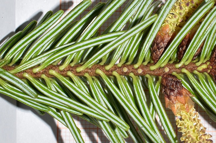 Aghi piatti sparsi sui rametti – abeti, Pseudotsuga menziesii, tsughe