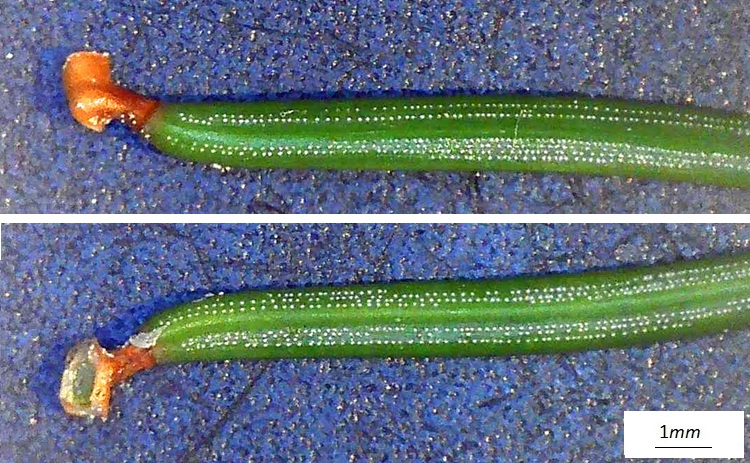 Un altro utile carattere degli aghi di questa specie è la loro sezione trasversale, non piatta, come nel bianco, ma quadrangolare (si direbbe una losanga). Così l’ago rotola tra indice e pollice pur non essendo circolare.